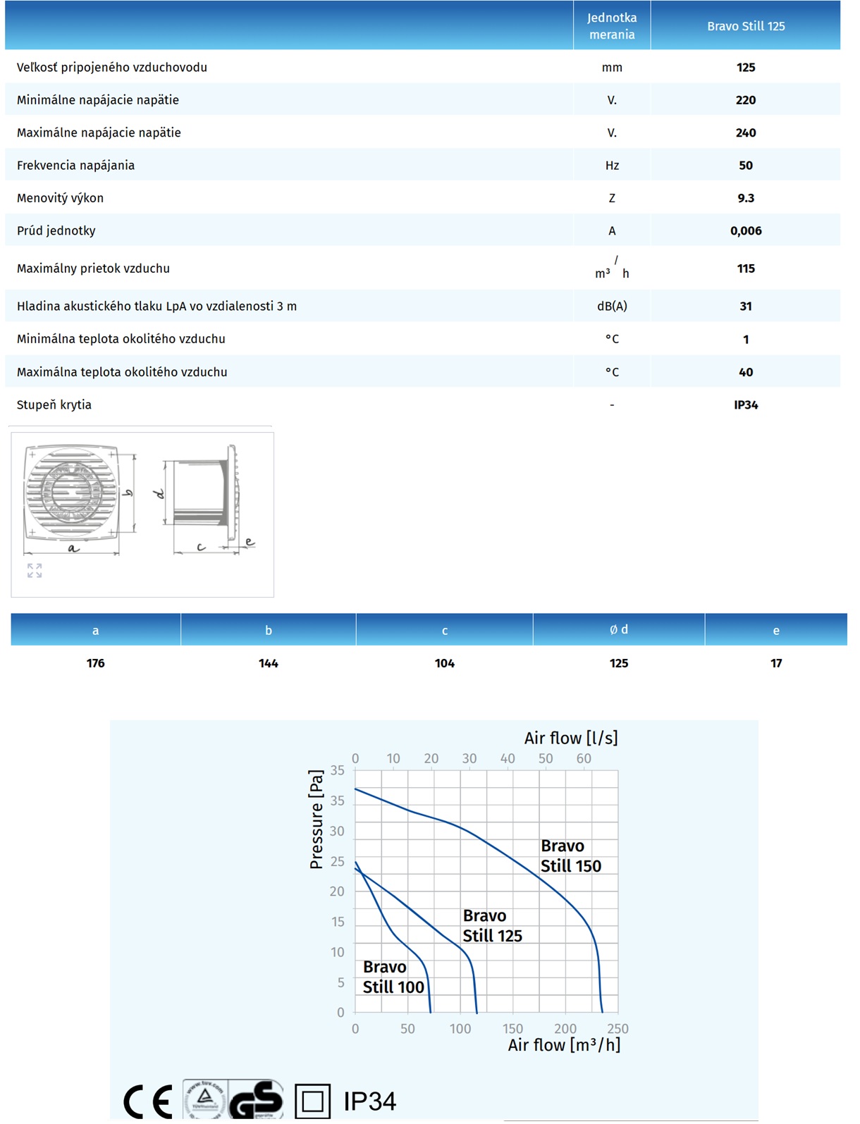 Ventilátory do kúpeľne a wc Blauberg BRAVO STILL sú vhodné aj na stenu aj do stropu.Moderný dizajn a estetický vzhľad.Puzdro a obežné koleso sú vyrobené z vysoko kvalitného ABS plastu, odolného voči UV žiareniu.vysoká účinnosť a životnosť.