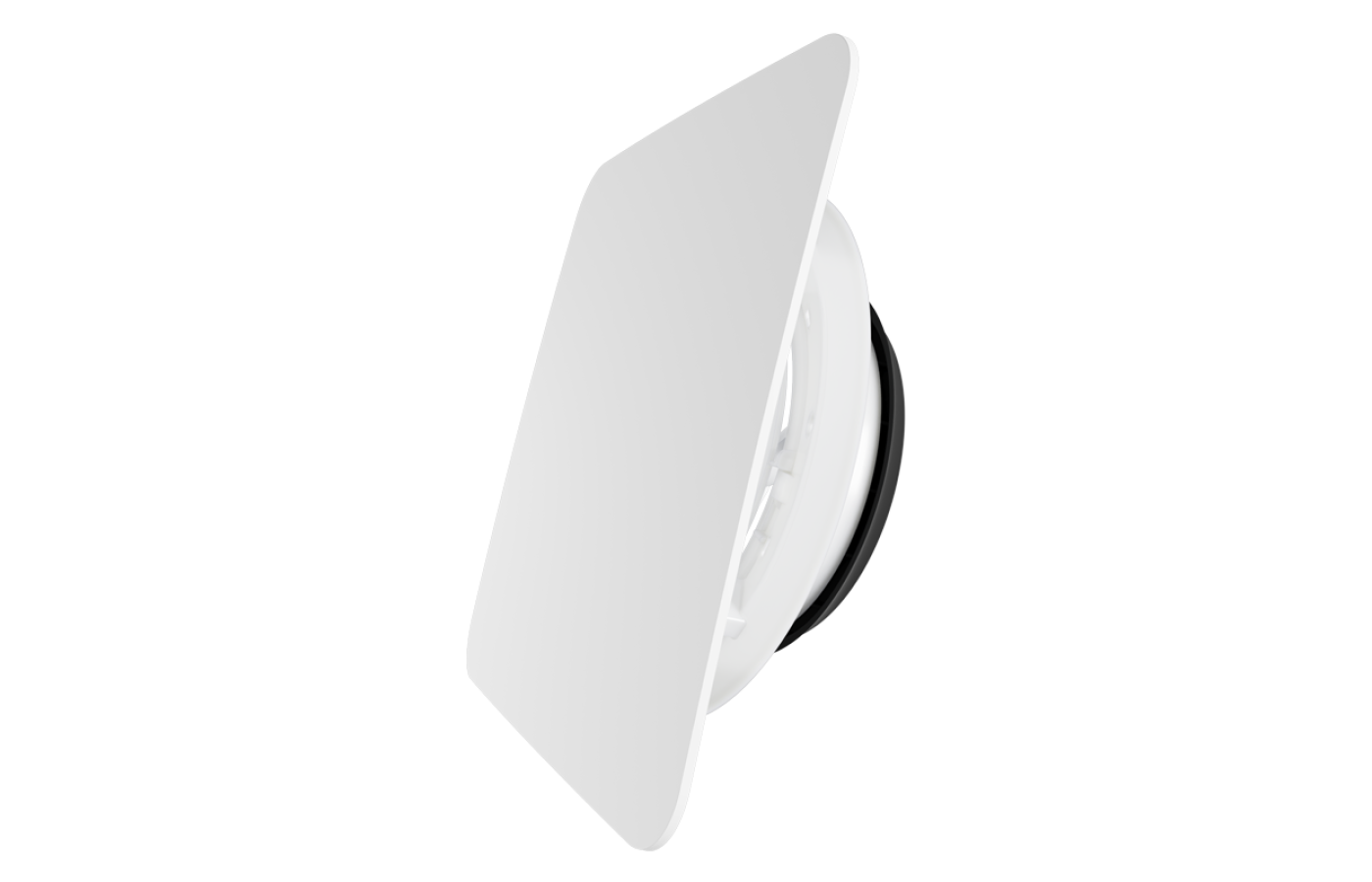 Diskový ventil s ozdobným panelom.Blauberg VPD 125 C biely plastový tanierový ventil hranatý ÚČEL