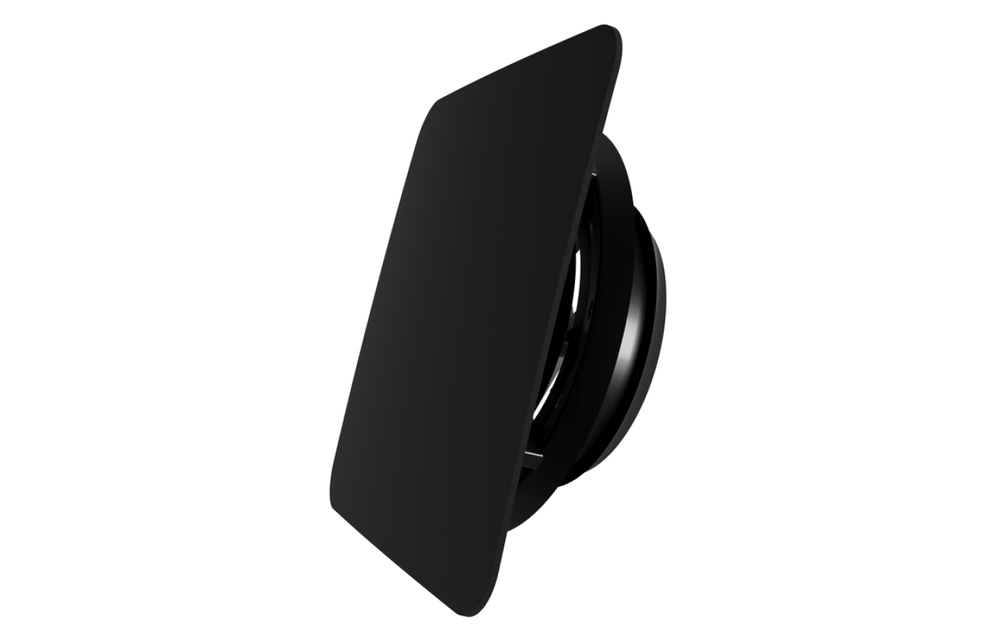 Diskový ventil s ozdobným panelom.Blauberg VPD 125 C čierný plastový tanierový ventil hranatý ÚČEL