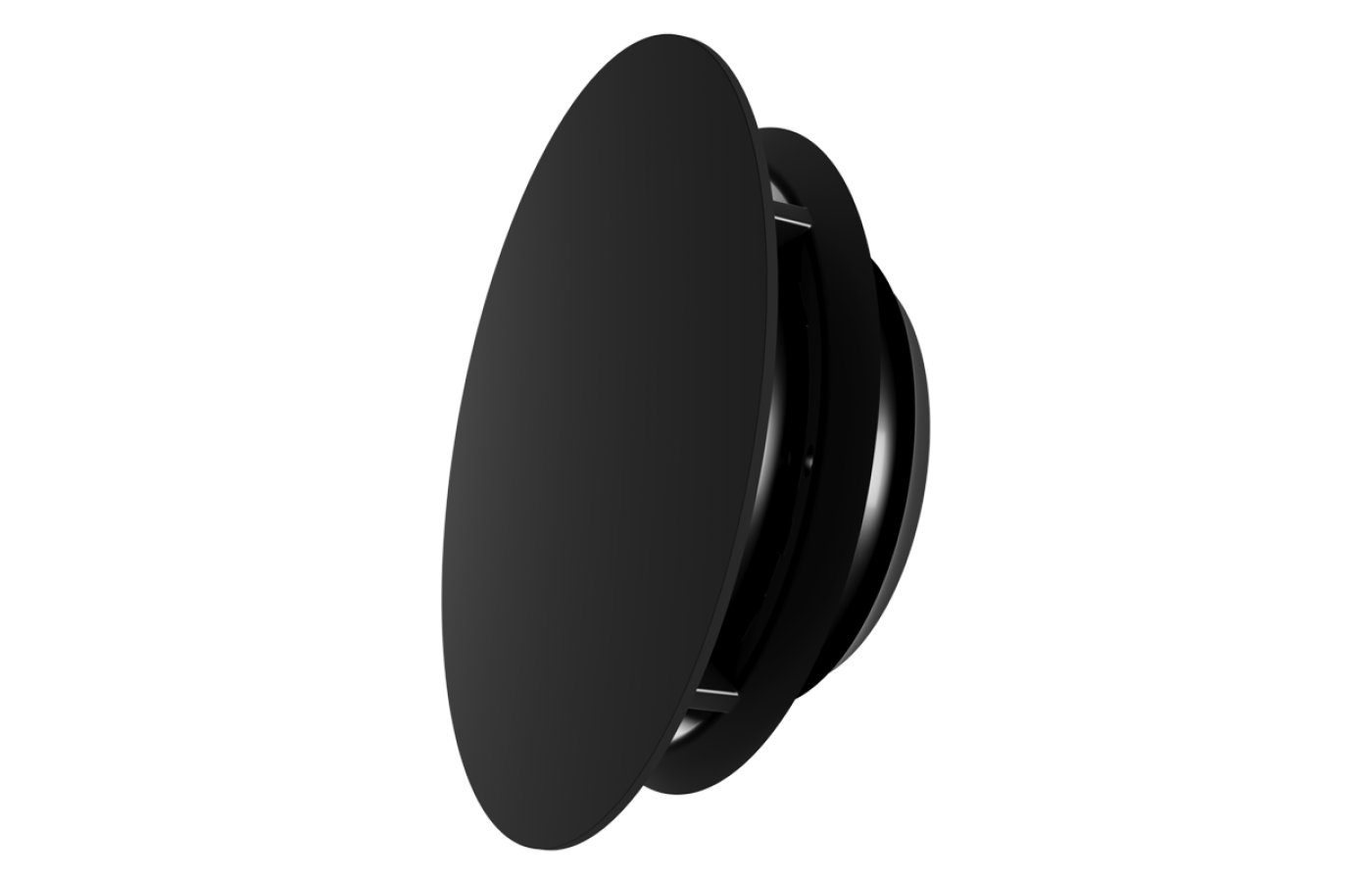 Diskový ventil s ozdobným panelom.Blauberg VPD 125 R čierný plastový tanierový ventil okrúhly 125mm