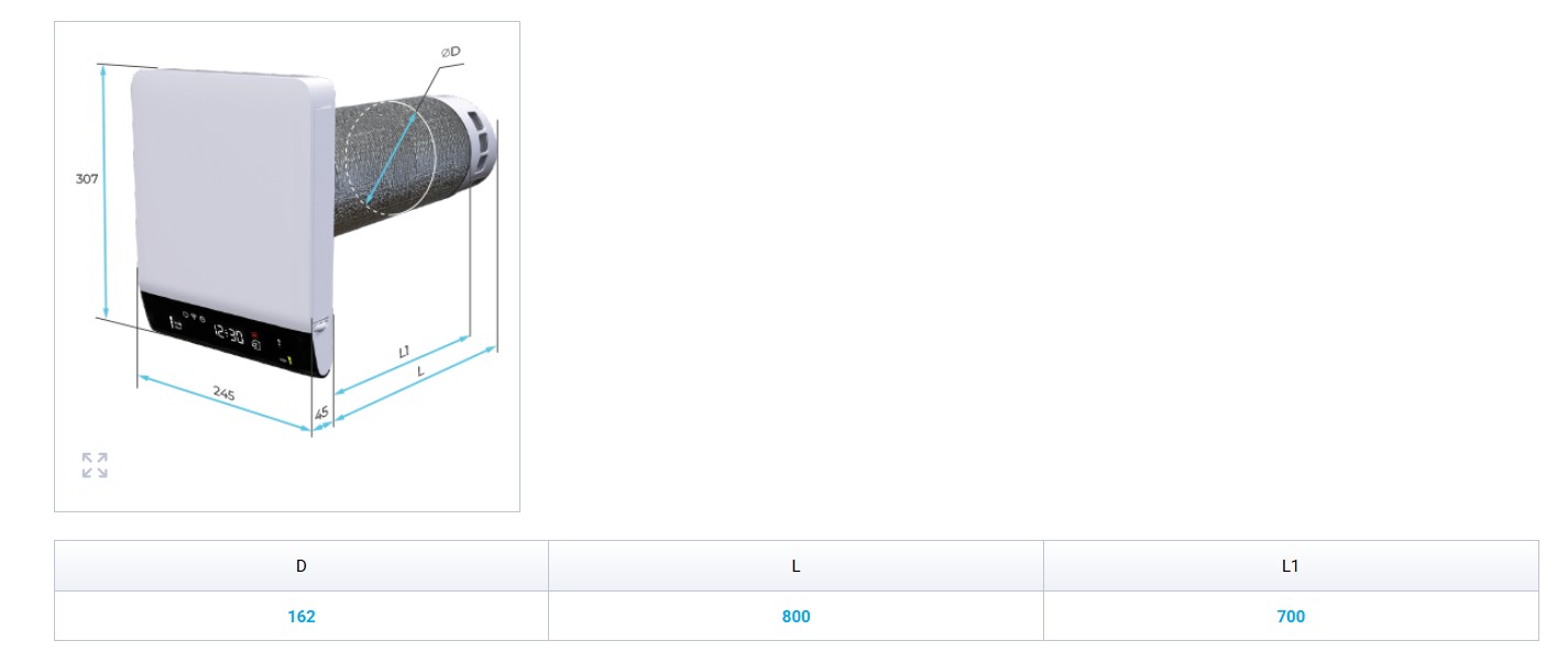Lokálny rekuperátor VENTS Breezy 160-E L07 pre stenu 560…700 mm priemer 162mm výkon 70m3/h s predohrevom 100W pre hrúbku steny max.70cm je najmodernejšie riešenie, ktoré kombinuje špičkovú filtráciu vzduchu, vetranie s rekuperáciou tepla, inteligentné riadenie energie a užívateľsky prívetivé rozhranie. Vďaka svojmu kompaktnému dizajnu a ekologickej výrobe poskytuje efektívny a udržateľný spôsob, ako zlepšiť kvalitu vzduchu v interiéri a zároveň znížiť spotrebu energie.Súčasne privádza a odvádza vzduch cez jeden otvor vo vonkajšej stene.