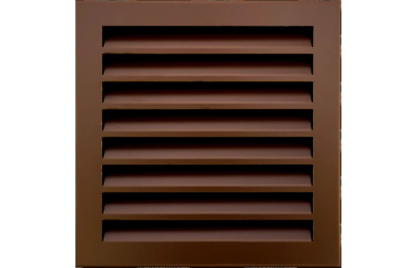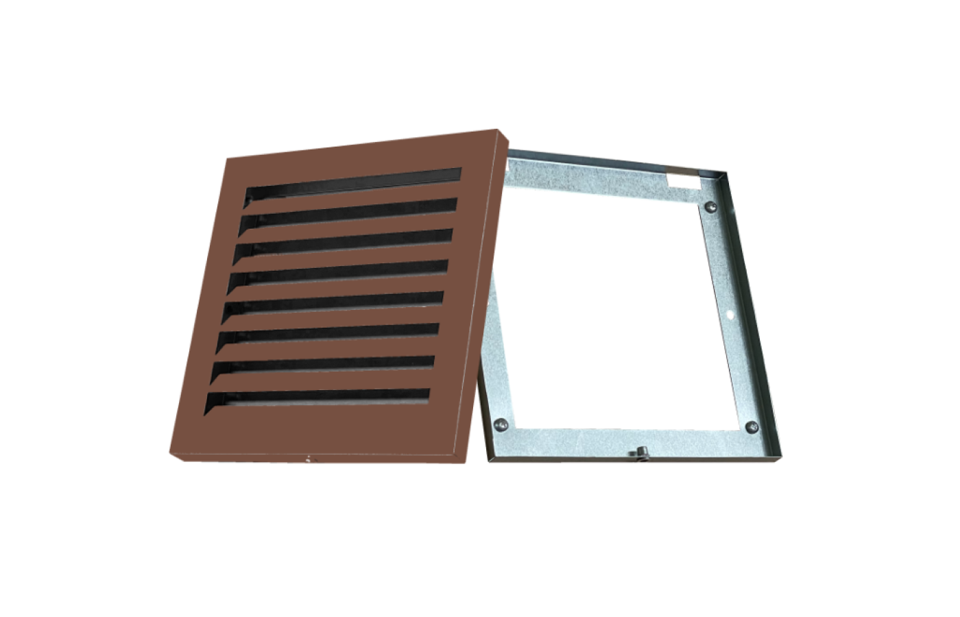 Kovová protidažďová mriežka hnedá bez sieťky proti hmyzu je určená na umiestnenie na stenu. Uchytenie je riešené pomocou skrytého závesu na hornej hrane mriežky a zaistenia vďaka jednému vrutu na spodnej strane rámu.