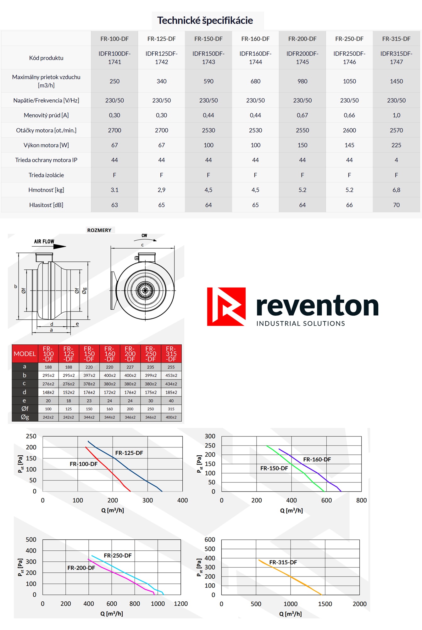 Reventon FR 200 DF-priemer napojenia 200mm výkon:1000m3/h napätie 230V
