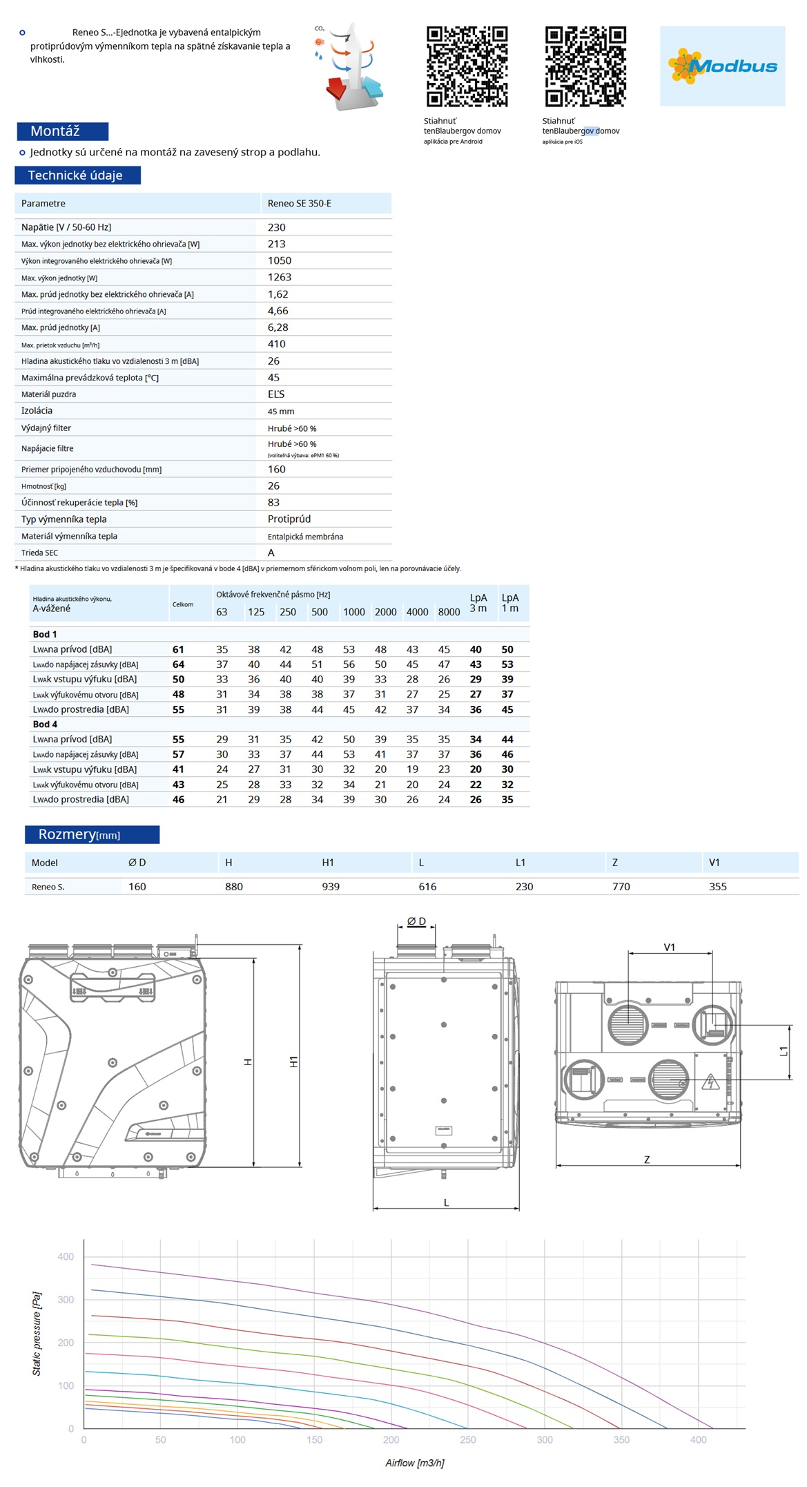 Vzduchotechnické jednotky s rekuperáciou tepla a energie.Rekuperačná jednotka Blauberg Reneo SE 350 R S21 výkon 410 m³/h Reneo S...-EJednotka je vybavená entalpickým