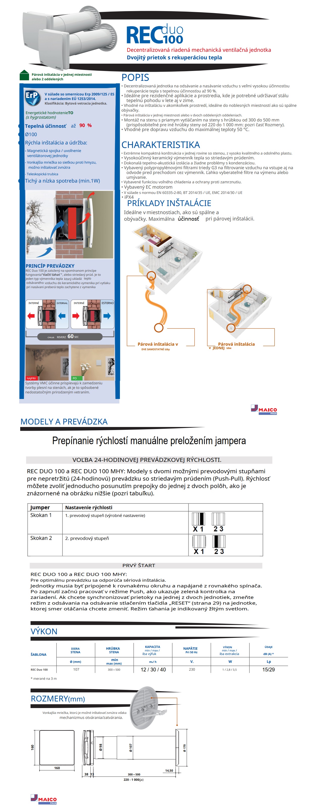 - Lokálny rekuperátor DYNAIR ELICENT MAICO REC DUO 100 MHY-∅100mm 40m3/h-parový senzor 2 rýchlostný zapínanie akýmkoľvek vypínačom