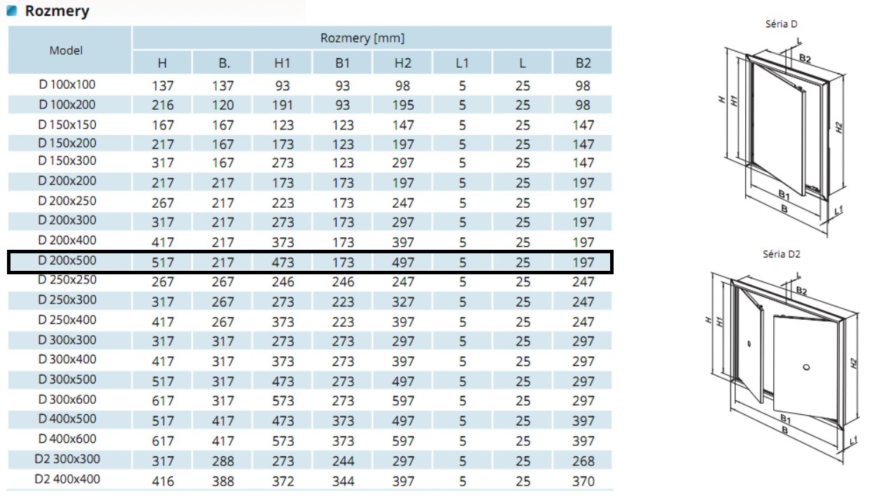 Revízne dvierka rozmery šírka-výška: 200x500mm